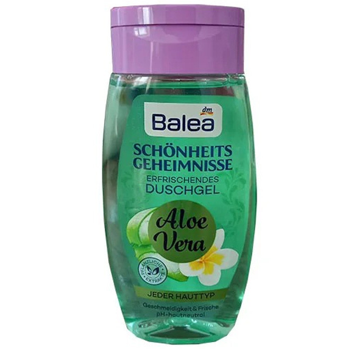 Ніжний і ароматний крем-гель для душу ТМ Balea «Секрети краси Aloe Vera» має оптимальну густу консистенцію, яка при використанні утворює ароматну густу піну для максимального очищення шкіри і забезпечує свіжість, що бадьорить, і відчуття комфорту.