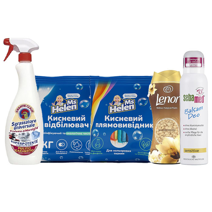 Кисневий засіб для виведення плям для кольорових тканин Ms Helen – це засіб, призначений для видалення різноманітних плям на кольорових тканинах, включаючи жир, кров, вино, траву та інші.